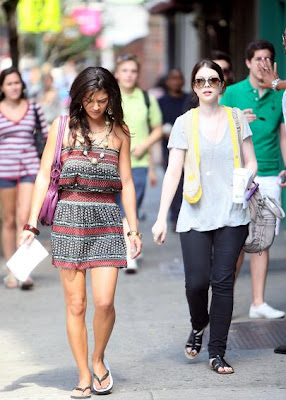 As estrelas de Gossip Girl, Michelle Trachtenberg, Jessica Szohr e Leighton Meester, muito divertidas nas gravações da série, em Manhattan. As três parecem ser grandes amigas, vejam as fotos: