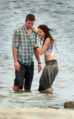 Miley Cyrus em mais um dia de gravações do seu novo filme "The Last Song", em Tybee Island, na Geórgia. Nas fotos podemos ver a actriz/cantora com o seu colega de elenco Liam Hemsworth.